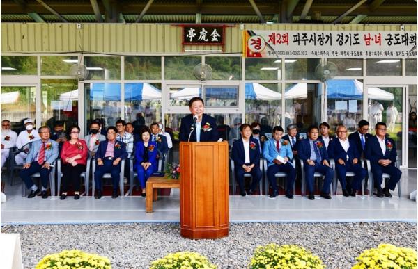 파주시궁도협회 주관으로 진행된 이날 대회에는 김경일 파주시장을 비롯해 윤후덕 국회의원, 박정 국회의원, 이성철 파주시의회 의장, 선수 및 관계자 등 500여 명이 참석했다.