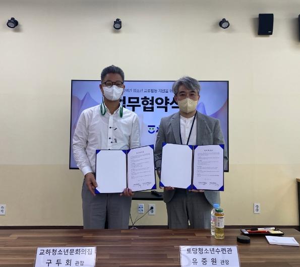 협약식은 토당청소년수련관 1층 공유에서 진행됐으며, 협의 과정을 통해 토당청소년수련관장과 교하청소년문화의집관장은 청소년의 건강한 성장을 위한 상호지원 및 협력을 약속했다.