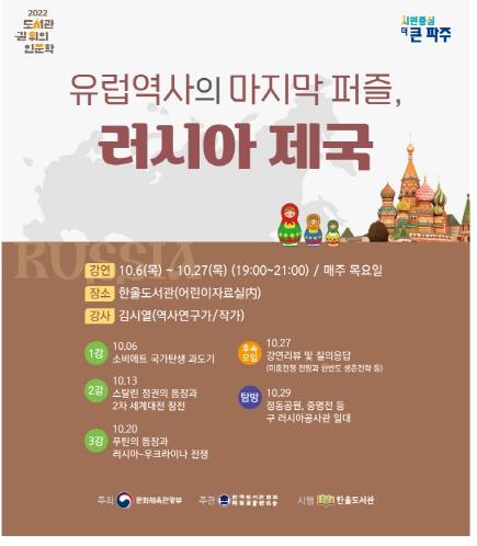 파주시 한울도서관은 10월 한 달간 ‘유럽역사의 흥망성쇠: 그 마지막 퍼즐 러시아제국’ 강좌를 개최한다.