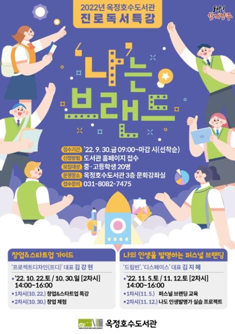 양주시 옥정호수도서관은 오는 22일부터 11월 12일까지 진행하는 ‘나는 브랜드’ 진로독서 특강에 참여할 중·고등학생을 모집한다.