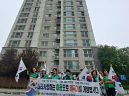 의정부시 송산3동행정복지센터 새마을부녀회는 9월 29일 관내 푸르지오7단지아파트에서 국군의 날, 개천절, 한글날을 맞아 주민들과 함께 ‘나라사랑 태극기 달기 운동’을 전개했다.