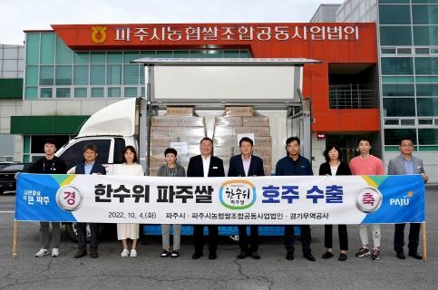 이번에 수출되는 파주쌀은 경기도에서 개발한 ‘참드림’ 품종으로 단백질 함량이 적고 찰기가 많아 밥맛이 좋은 경기미 대표 품종으로, 한수위 파주쌀 3톤이 수출돼 호주 현지 마트에서 판매될 예정이다.