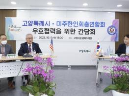 이동환 고양특례시장이 지난 5일 고양시청 평화누리실에서 모국을 방문한 미주한인회총연합회 회원 20여명과 간담회를 가지며 상호 협력하기로 했다.