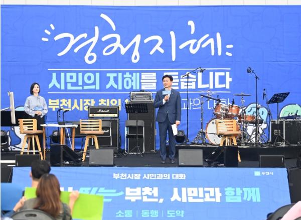 조용익 부천시장이 취임 100일을 맞아 지난 6일 부천시청 잔디광장에서 시민 400여 명과 '경청지혜, 시민의 지혜를 듣습니다'를 주제로 시민과 대화의 시간을 가졌다.