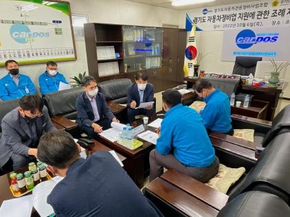 경기도의회 건설교통위원회 이홍근 도의원(더불어민주당, 화성1)은 6일 경기도 자동차전문정비사업조합 사무실(수원시 구운동 소재)에서 경기도 택시교통과, 더불어민주당 경기도당 및 경기도 자동차전문정비사업조합 관계자들과 함께 환경친화적 자동차 보급 확산 및 신기술 개발에 따른 자동차정비업 지원을 논의하고자 간담회를 개최했다.