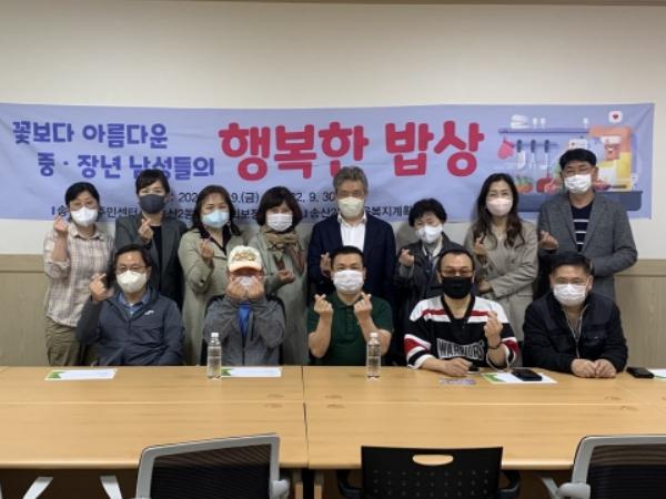 의정부시 송산2동은 10월 14일 주민센터 2층 회의실에서 김호경 위원장을 비롯한 송산2동 지역사회보장협의체와 마을복지계획추진단 위원 9명과 교육생 5명이 참석한 가운데 ‘중장년 남성들의 행복한 밥상’ 사업 종결간담회를 개최하며 사업을 마무리했다.
