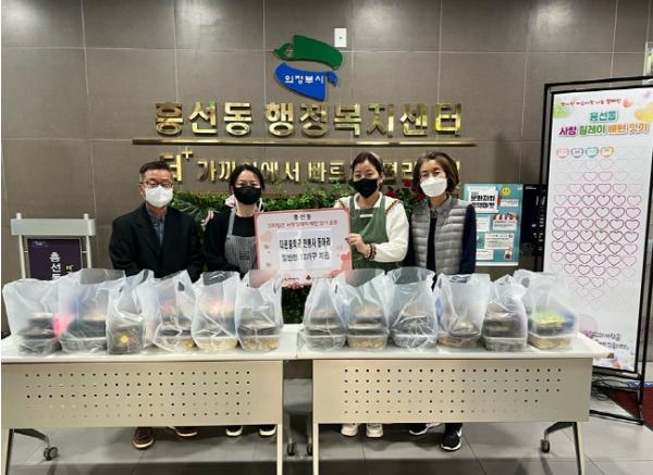의정부시 흥선동 행정복지센터는 10월 18일 다온중 찬봉사 동아리(회장 조윤선)에서 의정부시 100일간 사랑릴레이 배턴 잇기 일환으로 홀몸어르신 12가구에게 밑반찬과 수세미 12세트를 전달했다고 밝혔다.