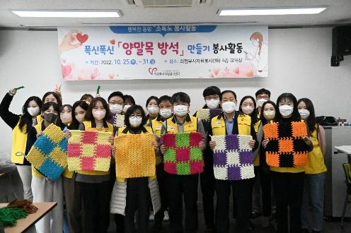 2022년 10월 28일 재단법인 의정부시평생학습원 평생나눔봉사단은 의정부시자원봉사센터에서 진행하고 있는‘양말목 방석 만들기 활동’에 참여했다.
