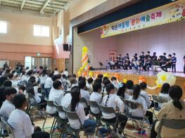꿈과 끼를 채우는 다양한 문화예술교육은 1-2학년은 창의음악, 3-4학년은 칼림바, 5-6학년은 우쿨렐레를 배우며 삶에 음악이 함께 할 수 있도록 1인 1악기 교육을 실시한다.