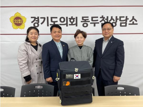 경기도의회 이인규의원(더민주, 동두천1)은 31일 도의회 동두천상담소에서 주식회사 필덤 김미경대표와 협력기관인 사)자연보호동두천시협의회 염윤섭회장, 박선영 사무국장과 함께 장애인용 특수제작 전용가방 지원사업 관련하여 논의하는 자리를 가졌다.
