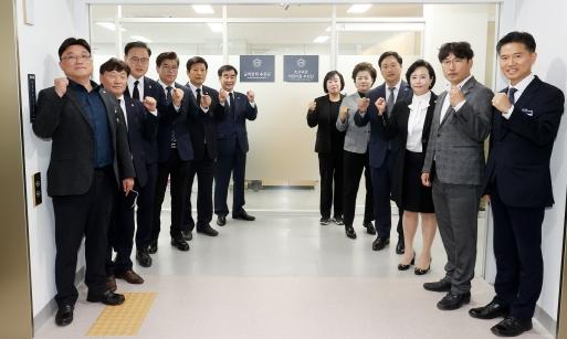 이와 관련, 염 의장 등은 현판식 후 참석자들과 의장 접견실에서 차담을 나누며 향후 추진방안에 대해 간략히 의견을 나눴다.
