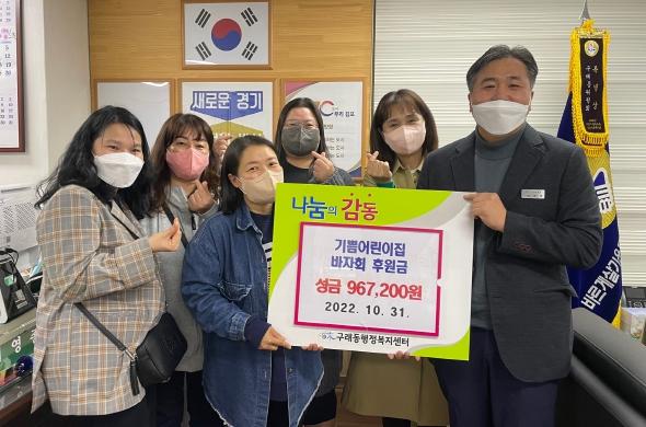 기쁨어린이집은 매년 바자회를 열고 성금을 기탁하고 있다. 올해 바자회는 코로나19로 2019년 이후 3년 만의 열리는 것으로 학부모와 지역주민의 큰 호응을 얻어 어느 해보다 많은 성금이 모일 수 있었다고.