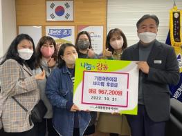 김포시 구래동은 지난 31일 구래동 소재 기쁨어린이집(원장 김유진)에서 성금 967,200원을 기탁 했다고 밝혔다.