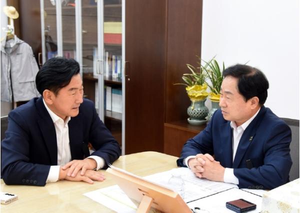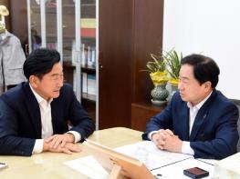 김동근 의정부시장은 11월 1일 오후 남양주시를 방문, 주광덕 남양주시장을 만나 지하철 8호선의 의정부 연장사업 추진을 위한 적극적인 상호 협력을 요청했다.