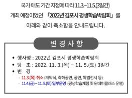 11월 4일부터 5일까지 일정의 평생학습 체험 및 원데이클래스 등 일부 프로그램은 최근 발생한 이태원 사건의 국가애도기간에 맞춰 차분하고 경건한 분위기 속에서 축소 운영된다.