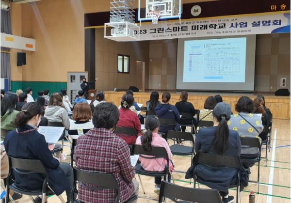 김포교육지원청 마송초등학교는 10월 31일 강당에서 학생, 학부모, 교직원, 지역주민을 대상으로 ‘2023 그린스마트 미래학교 사업설명회’를 개최했다고 밝혔다.