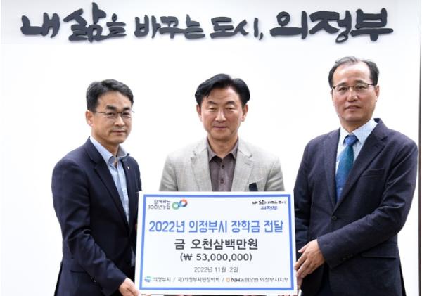 의정부시는 NH농협은행 의정부시지부가 11월 2일 (재)의정부시민장학회에 장학금 5,300만 원을 전달했다고 밝혔다.