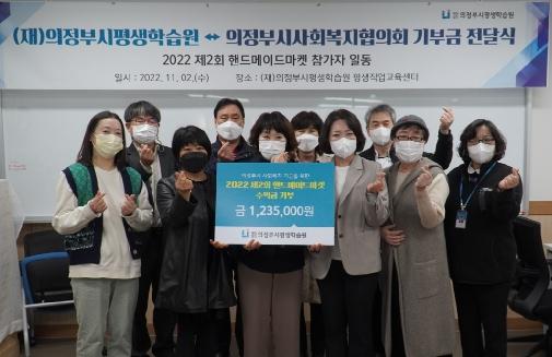 (재)의정부시평생학습원(원장 유상진)은 11월 2일 평생직업교육센터에서 의정부시사회복지협의회에 '제2회 핸드메이드마켓' 수익 기부금을 전달했다.