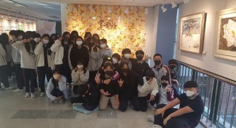 이 전시회는 ‘꽃, 물들다.’라는 주제로 전문작가의 수채화 작품을 전시했는데, 초대 작가 임미경님은 학생들에게 예술 체험의 기회를 제공하는 프로그램에 참여하게 되어 매우 뜻깊다는 소감을 전했다. 전시회장을 찾은 학생들은 ‘예쁜 꽃을 한 공간에서 볼 수 있어서 좋았고, 이런 전시가 많이 있었으면 좋겠다. 평소에 전시회장을 찾아가기 어려웠는데, 학교에서 직접 전문작가의 꽃 그림으로 관람할 수 있어서 정말 좋았으며, 우리 학교가 꽃으로 물든 것 같다.’등의 소감을 전하기도 했다. 또한 학생들과 선생님들이 전시회에 많은 관심과 참여로 감상 소감을 적은 스티커 붙이기 활동에도 적극적으로 참여하는 모습을 보였다.