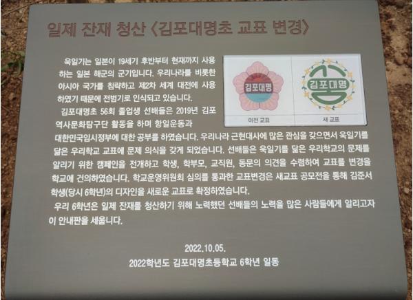 일제 잔재 청산에 관심을 두고 지속해서 활동하고 있는 김포대명초 학생들이 앞으로도 올바른 역사관을 지닌 시민으로 성장해 나가길 기대한다.