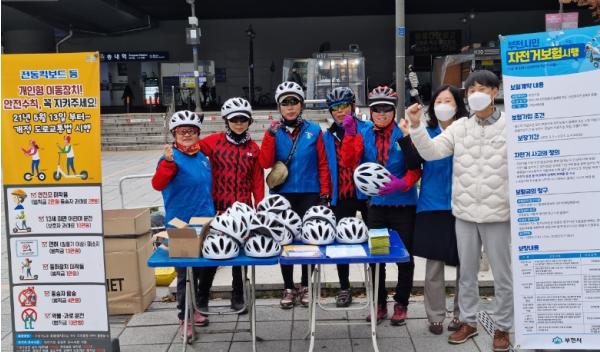 부천시는 지난 3일 송내무지개광장(송내 북부역)에서 부천시 자전거연합회와 함께 자전거와 개인형 이동장치(킥보드)의 안전한 이용문화 정착을 위한 민·관 합동 캠페인(7차)을 실시했다.