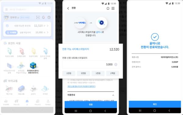 지난 3월 17일 우리카드와 체결한 업무협약을 바탕으로 시티패스 앱에서 적립한 마일리지를 우리WON카드 멤버스 앱과 연계하여 우리WON꿀머니로 전환할 수 있게 된 것이다.