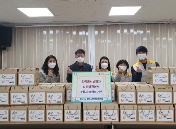 고양특례시 일산동구 백석1동 행정복지센터는 11일 농업인의 날을 맞아 한국동서발전(주) 일산발전본부로부터 소외되고 어려운 이웃을 돕기 위한 누룽지 45박스를 기탁 받았다고 밝혔다.