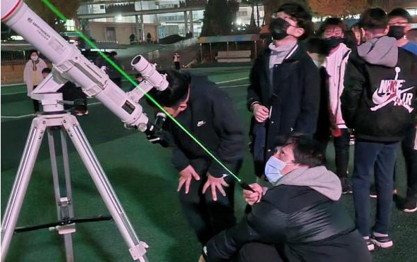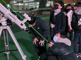 이어서 7시부터 운동장에서 본격적인 체험과 관측을 시작했다. 운동장에서 대형 망원경 4대를 활용하여 목성, 토성, 베가, 알타이르 등을 관측하면서 계절별 별자리를 알아보고 별자리에 대한 이야기를 나눴다. 이후 떠오른 달을 관측하면서 달의 바다와 육지, 크레이터 등을 관측했고 마지막으로 천체망원경을 활용하여 학생들이 직접 달 사진을 찍으면서 모든 활동이 마무리됐다.