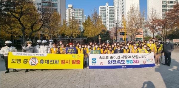 이날 부천시 공무원, 원미경찰서, 보행지킴이 등 60여 명은 유동 인구가 많은 부천시청역, 신중동역 인근에서 연합캠페인을 실시했다.