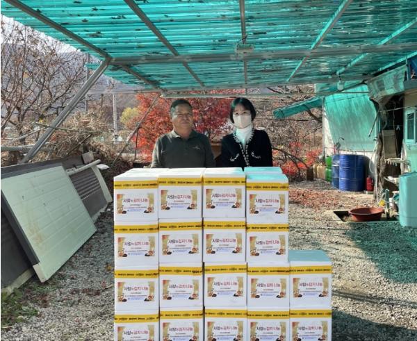 의정부시 송산1동주민센터는 11월 14일 ㈜안전환경일보가 관내 식사 준비가 어려운 이웃분들게 전달해달라며 김장김치 20박스를 기탁했다고 밝혔다.