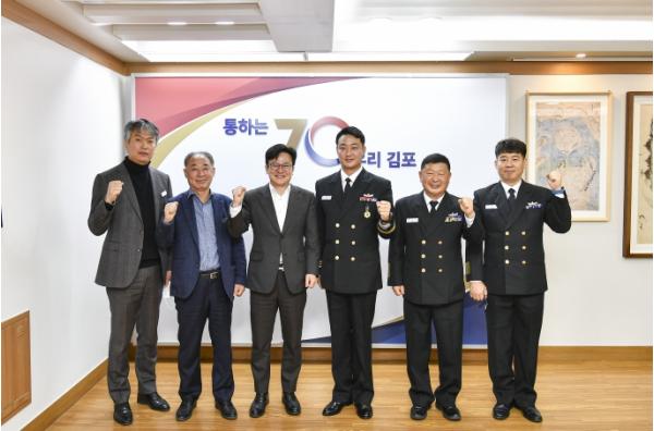 15일 김포시청에서는 코로나19로 인해 그동안 이뤄지지 못했던 김포시와 김포함간 상호방문이 진행됐다. 이 자리에서 김병수 김포시장과 김병화 김포함장(소령)은 더욱 촘촘한 상호방문 및 지역 안보·안전 협력 공감대를 구축했다.
