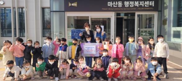 마산동 한강에일린어린이집은 지난 11일 마산동 행정복지센터를 방문해 어린이집에서 연 바자회를 통해 거둔 수익금 169만 원을 기탁했다. 성금 전액은 지역 내 어려운 이웃에게 전달될 예정이다.