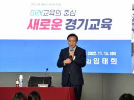 임태희 교육감이 15일 경인교육대학교 경기캠퍼스에서 예비교사들과 만남의 자리를 갖고 ‘경기 미래교육의 방향’을 주제로 특강을 했다.