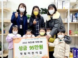양주시 회천3동 행정복지센터는 지난 15일 고암동에 소재한 햇빛어린이집에서 어려운 이웃을 위해 써달라며 이웃돕기 성금 95만원을 기탁했다고 밝혔다.