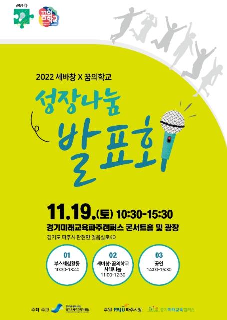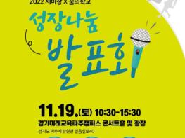 경기도파주교육지원청은 11월 19일 경기미래교육캠퍼스에서 ‘2022 성장나눔발표회’를 개최한다고 밝혔다.
