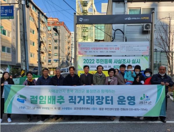의정부시 호원1동은 11월 18일 호원1동주민센터 앞에서 자매결연지 충청북도 괴산군 불정면과 함께 본격적인 김장철을 맞이해 우수한 품질의 농산물을 저렴한 가격으로 제공하는 절임배추 직거래 행사를 개최했다.
