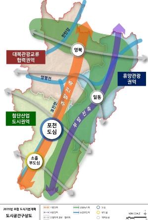 특히 경기북부의 인구감소를 극복하는 균형발전을 유도했다. 중심지체계의 기능을 분리해 도심·부도심(포천, 소흘)은 양질의 정주기반을 조성하면서 지속적인 인구 유발 및 산업발전의 거점이 되는 콤팩트시티를 구상했다. 반면 지역 중심(영북, 일동)은 한탄강, 역사문화자원 등을 활용한 관광·휴양 산업의 자족기능 활성화 특화거점으로 계획했다.