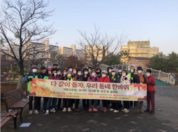 행사는 지난 10월 8일부터 시작해 둘째, 넷째 주 토요일 총 4회에 걸쳐 행신동 인근을 걷는 일정으로 진행됐다. 매회 다른 트레킹 코스 및 숲해설가 배치로 걷기의 재미를 더했으며 행신3동 시민안전지킴이, 주민자치 위원이 안전요원으로 나섰다. 걷기 코스는 ▲1회 지렁산 둘레길 ▲2회 국사봉 둘레길 ▲3회 지도공원 능골동산길 ▲4회 성사천으로 편성됐다.
