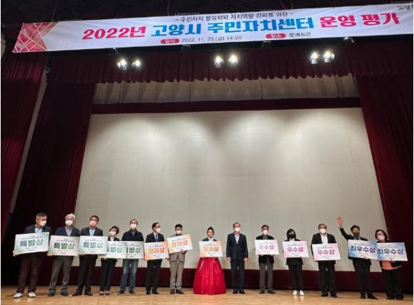 고양특례시가 지난 11월 25일 시청 문예회관에서 ‘2022년 고양시 주민자치센터 운영평가 및 시상식’을 실시했다. 이날 14개 동 주민자치회가 수상했다.