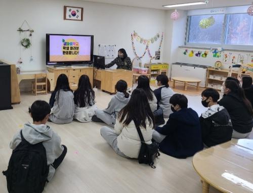 김포교육지원청 모담유치원은 24일 금파중학교 1학년 학생 12명을 대상으로 ‘유치원 교사 직업 체험’을 실시했다고 밝혔다.