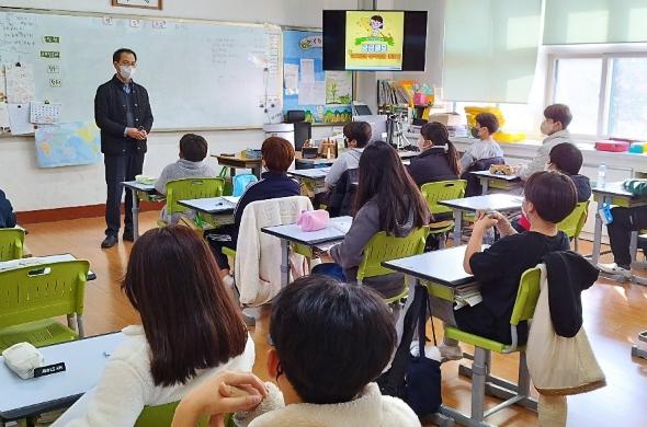 ‘새 학교 프로그램’이란 김포교육지원청에서 운영하는 상급학교 진학 지원 콘텐츠로, 중학교 선생님이 직접 초등학교를 찾아가 맞춤형 강의 등을 통해 진로, 진학을 지원하는 프로그램이다.