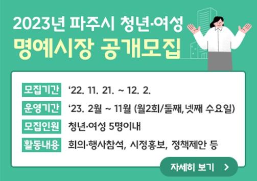 파주시는 시민들의 시정 참여 기회를 확대하고 다양한 시민들의 의견을 시정에 반영하기 위해 청년과 여성, 청소년, 장애인 등 각 분야의 시민을 일일명예시장으로 임명할 예정이라고 밝혔다.