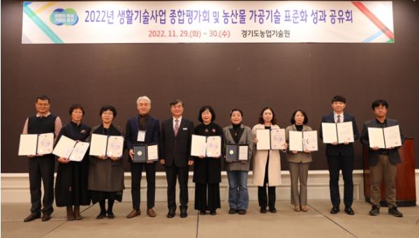 경기도농업기술원이 11월 29일과 30일 이틀간 시·군 농업기술센터 생활기술분야 담당자와 농업인 70명을 대상으로 화성 라비돌 리조트에서 2022년 생활기술분야 종합평가회를 열고 생활기술분야(농산물 가공?식문화 및 농작업) 표준화기술 성과공유 시간을 가졌다.