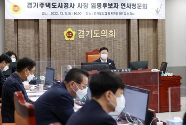 지난 5일 도시환경위원회는 경기주택도시공사 사장 임명후보자에 대한 정책역량 검증을 위한 인사청문회를 실시하여, 후보자의 자격과 업무수행 능력을 중심으로 공공기관장으로서 갖추어야 할 비전과 리더십 등에 대해 집중적으로 검증했다.