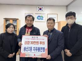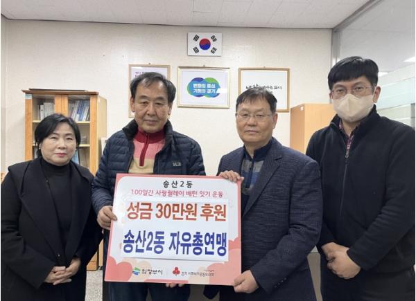 의정부시 송산2동주민센터는 1월 9일 송산2동 자유총연맹에서 취약계층의 따뜻한 겨울나기를 위해 성금 30만 원을 기탁했다고 밝혔다.