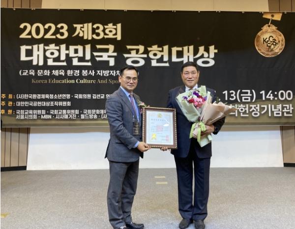 대한민국 공헌대상은 의정·문화·교육·체육 등 7개 전문분야에서 탁월한 업적을 이루고 사회발전에 중추적 역할을 한 인물을 선정해서 수여하는 상으로, 지난 2018년부터 실시해왔다.