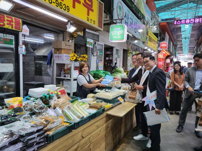 현장상담을 마친 김완규 도의원은 참석자들과 함께 시장 현장을 방문해 장보기 행사와 전통시장 이용 활성화 캠페인을 이어갔다. 김완규 위원장은 전통시장 곳곳에서 농수산물 등 제수용품을 직접 구입하며 시장 상인들의 고충을 듣고 격려했다.