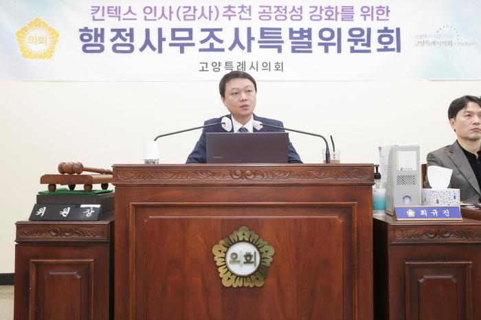 고양특례시의회 ‘킨텍스인사(감사)추천공정성강화를위한행정사무조사특별위원회’(이하 특위)가 3일 진행된 제11차 행정사무조사에서 엄 감사의 킨텍스 주요 현안 파악 부족과 여러 의혹에 대한 불성실한 답변 태도를 강하게 비판했다.